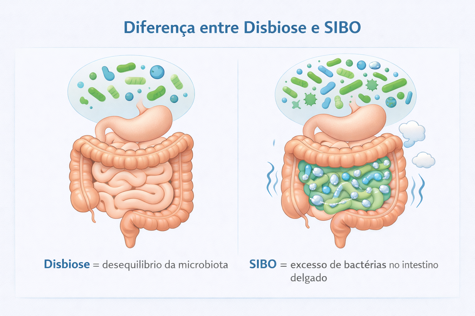 Importante: Nem todo paciente com disbiose tem SIBO, mas muitos pacientes com SIBO apresentam disbiose associada.