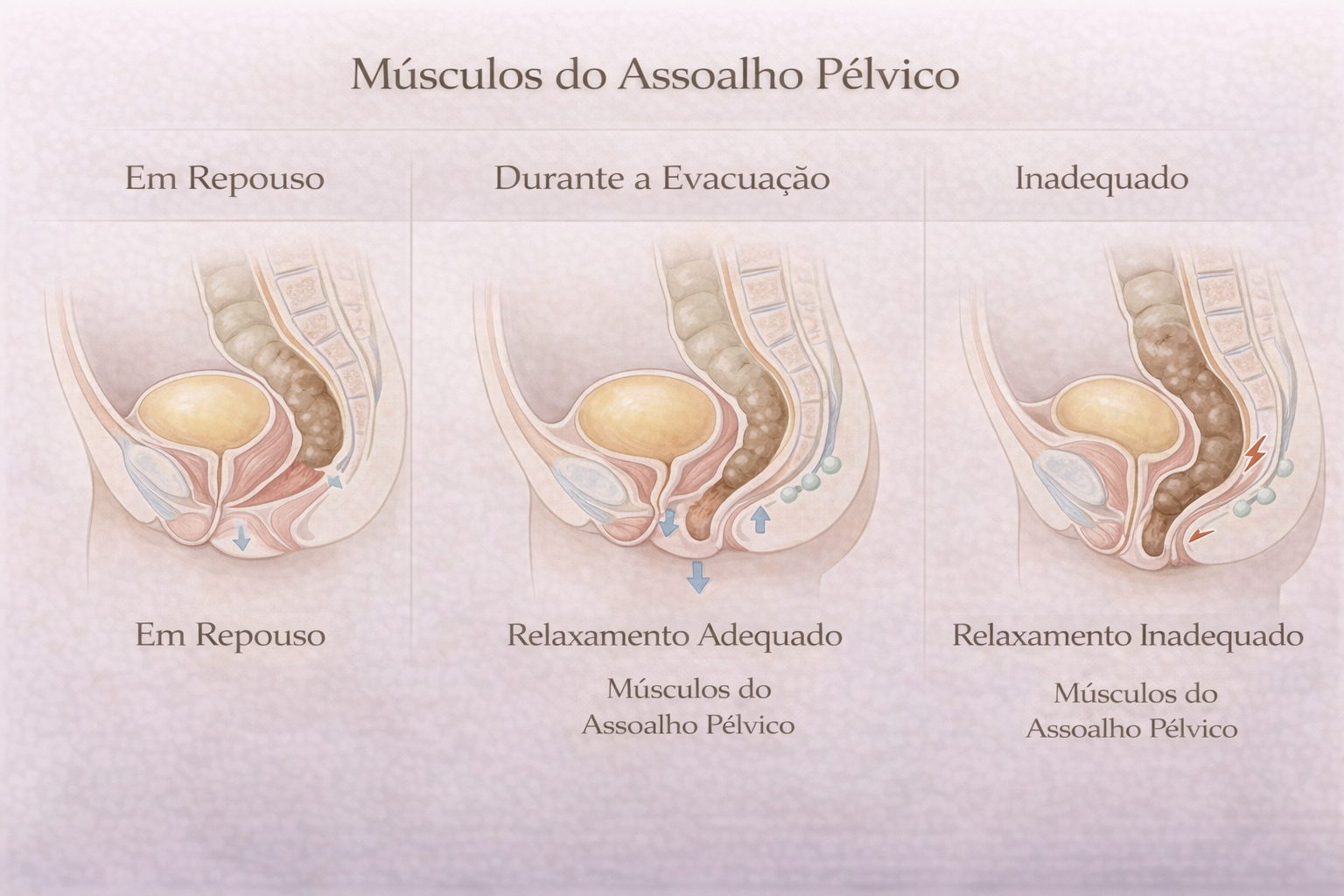 Ocorre quando os músculos do assoalho pélvico não relaxam adequadamente durante a evacuação, dificultando a saída das fezes.